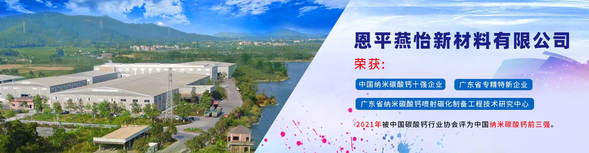 恩平燕怡新材料有限公司成立于2006年,位于廣東省江門恩平市。是一家專注于納米碳酸鈣產品研發(fā)、生產以及銷售服務的新材料企業(yè)。 公司榮獲 “高新技術企業(yè)”、 “清潔生產企業(yè)”、“廣東省納米碳酸鈣噴射碳化制備工程技術研究中心” 、 “中國納米碳酸鈣十強企業(yè)” 、 “廣東省專精特新企業(yè)”等稱號,并通過ISO9001:2015質量管理體系認證,產品質量符合國家行業(yè)標準GB/T19590—2011納米碳酸鈣優(yōu)等品的要求。...